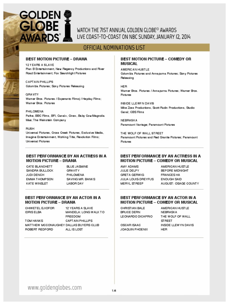 2014 Goldenglobes Nominations Entertainment General